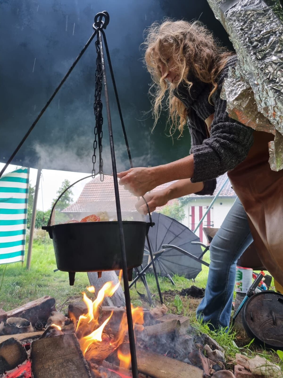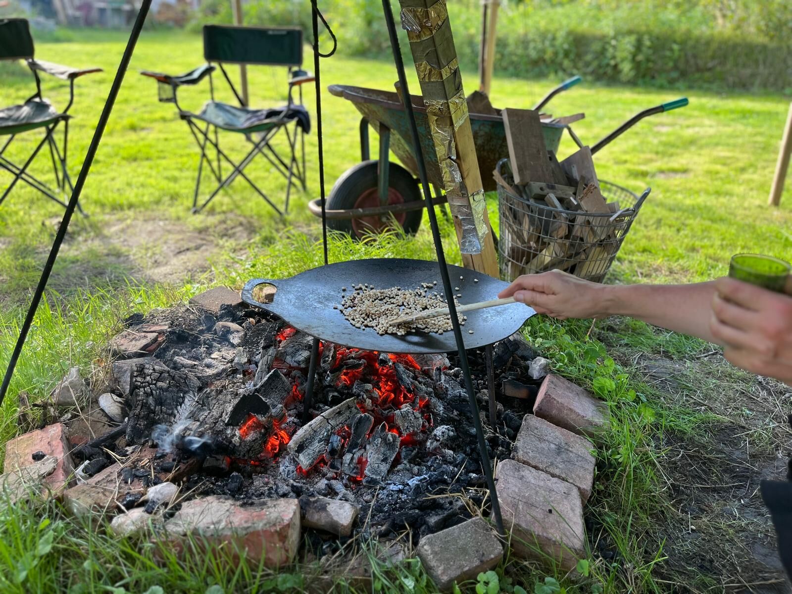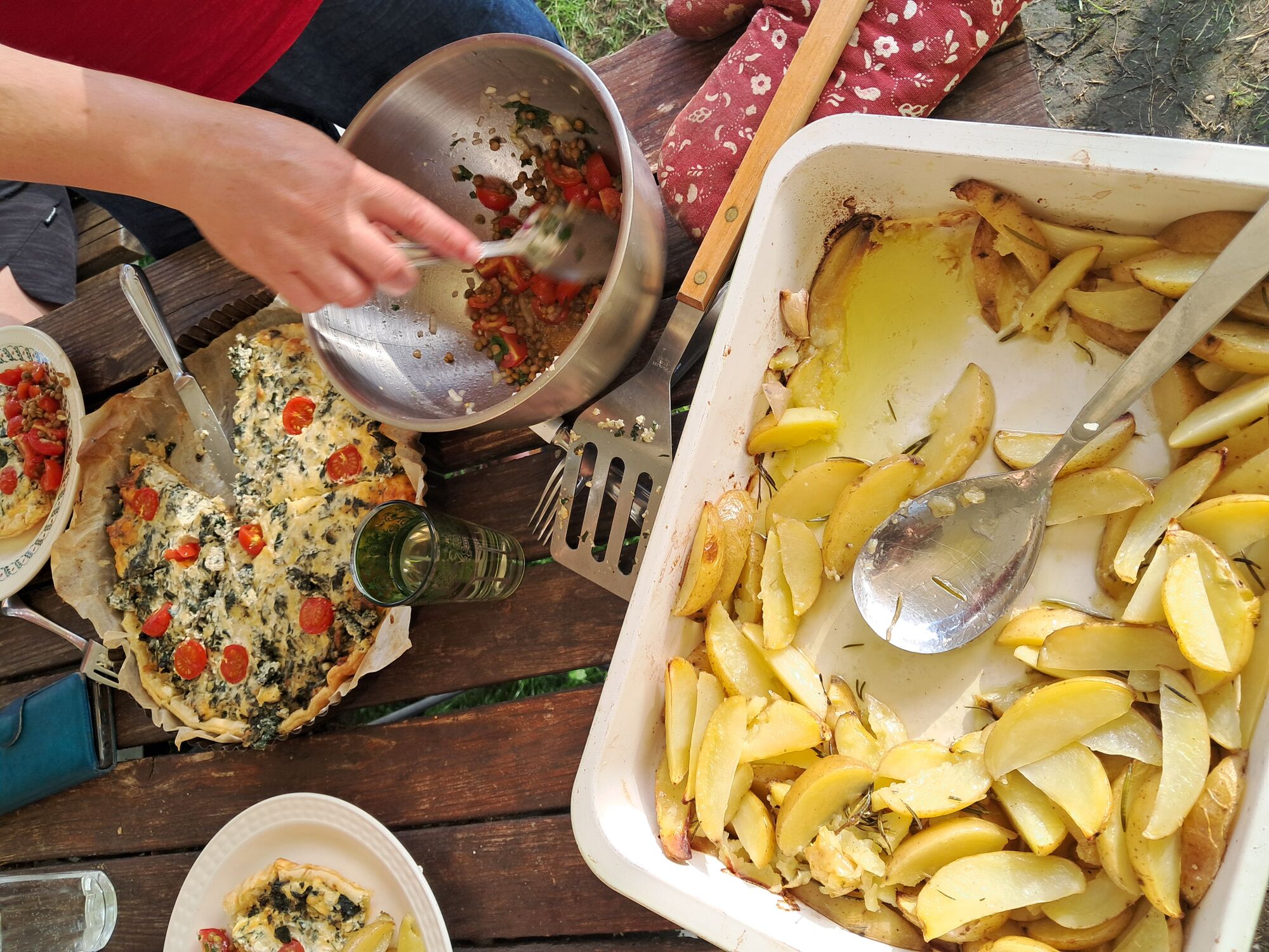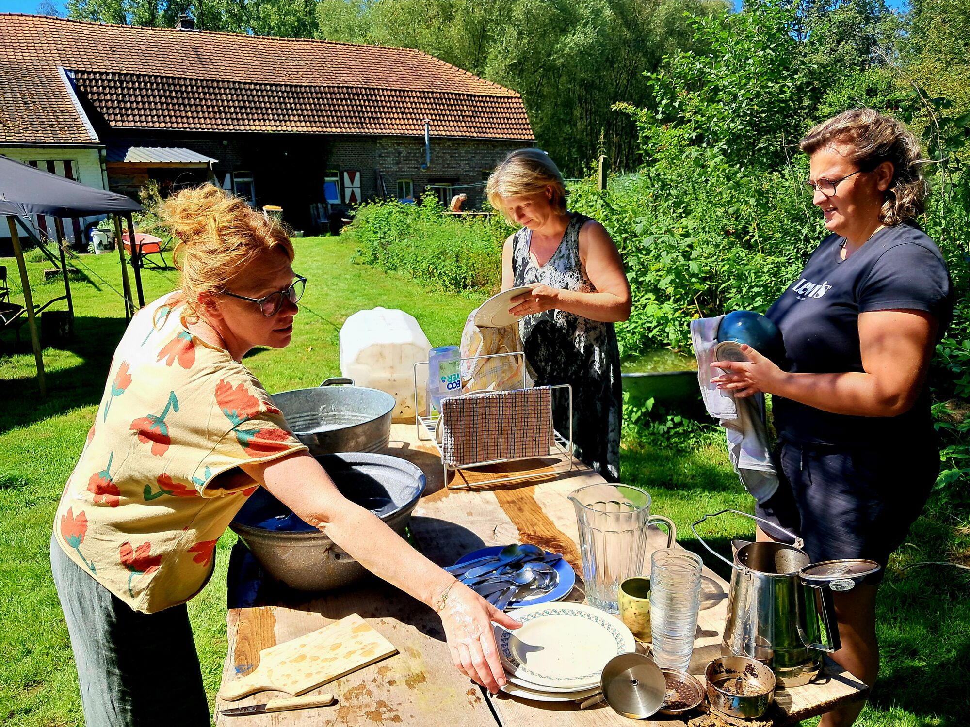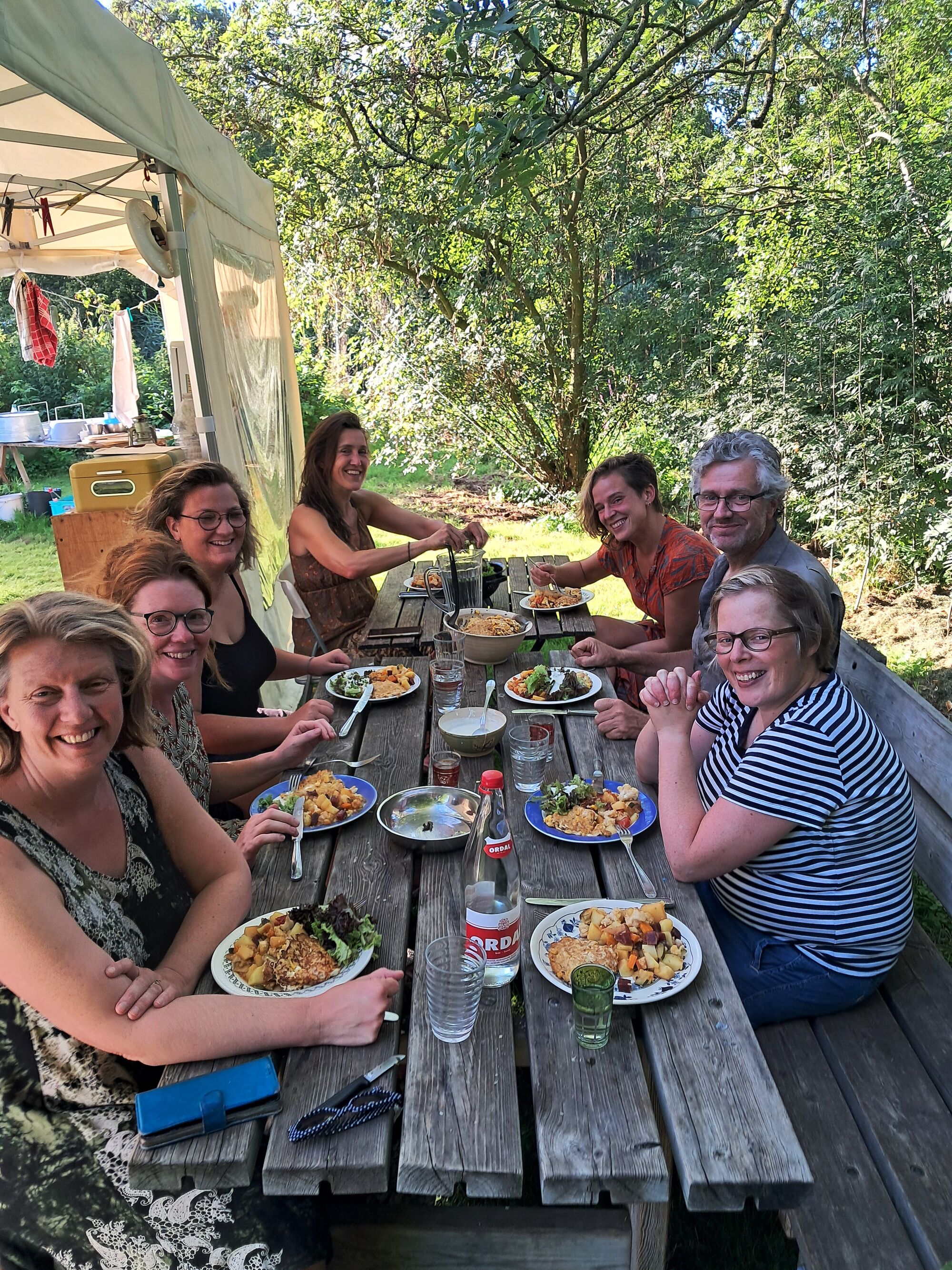 Je slaapt in de tent in onze tuin aan de Binkermolen. De maaltijden (biologisch-vegetarisch) bereiden we samen op het houtvuur. Tafel dekken, afruimen en afwassen doen we samen.